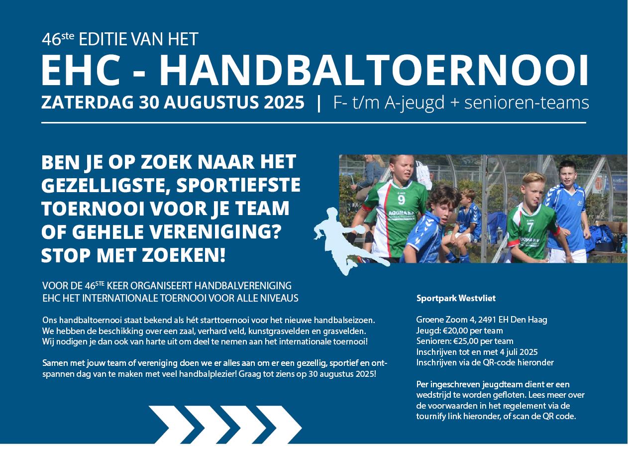 Welkom op het 46ste Internationaal Handbaltoernooi van EHC op 30 augustus 2025.
